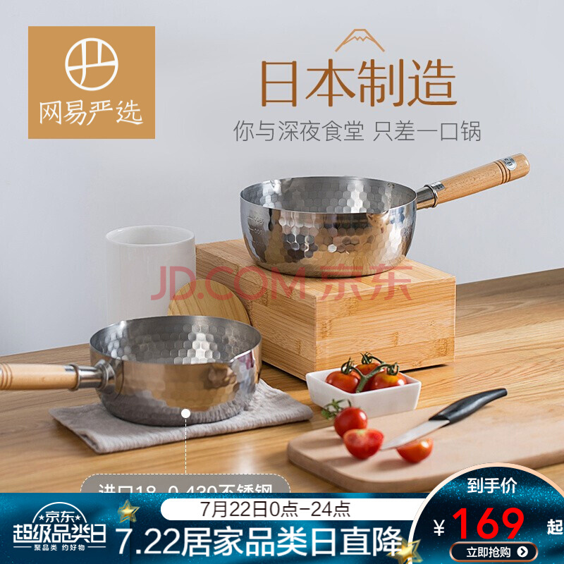 网易严选 雪平锅日本制造汤锅奶锅炒锅泡面锅不锈钢通用锅