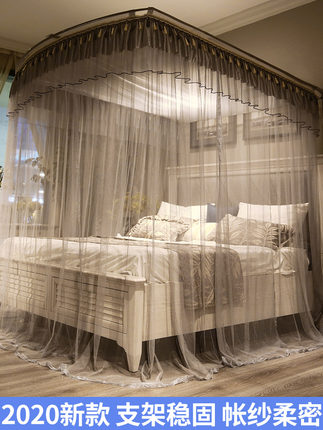 u型伸缩免安装蚊帐子家用1.5m1.8床1.2文章2米x2.2带支架固定纹账